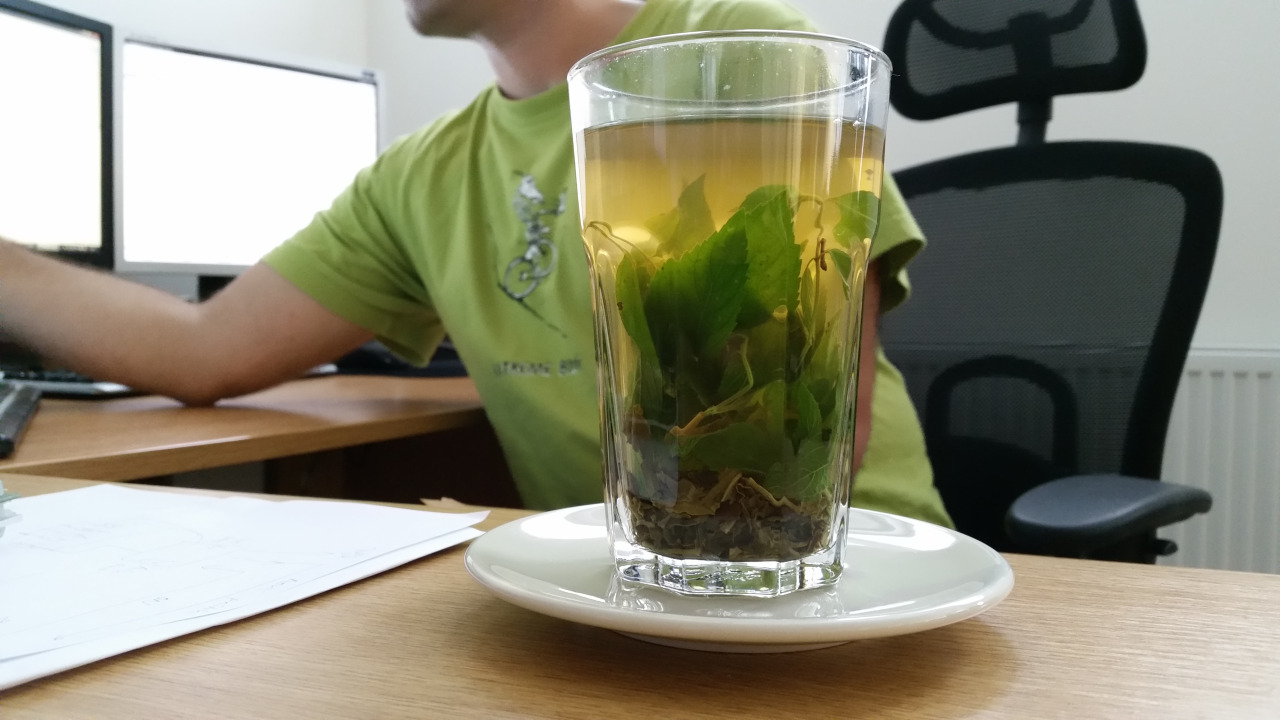 Luhovat 10 minut, průběžně promíchávat a těšit se pohledem na vír lístků uvnitř sklenice. Poměr zeleného čaje a máty by měl být cca 1:5 nebo více. Nápoj laď následovně: Moc hořké? Uber zeleného čaje a přidej máty. Málo sladké? Přidej cukru. Dobrou chuť :-).